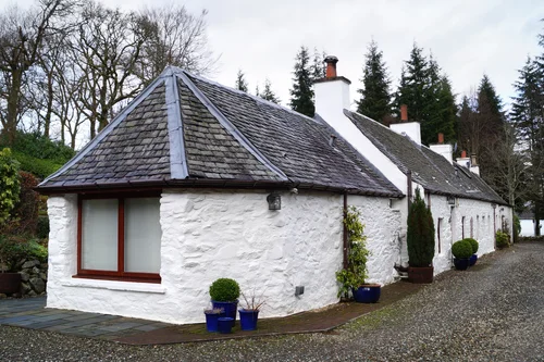 The Village Rest was a new build restaurant in the picturesque conservation village of Luss. The building had to blend in with the existing 200 year old houses, like the neighbouring cottage.